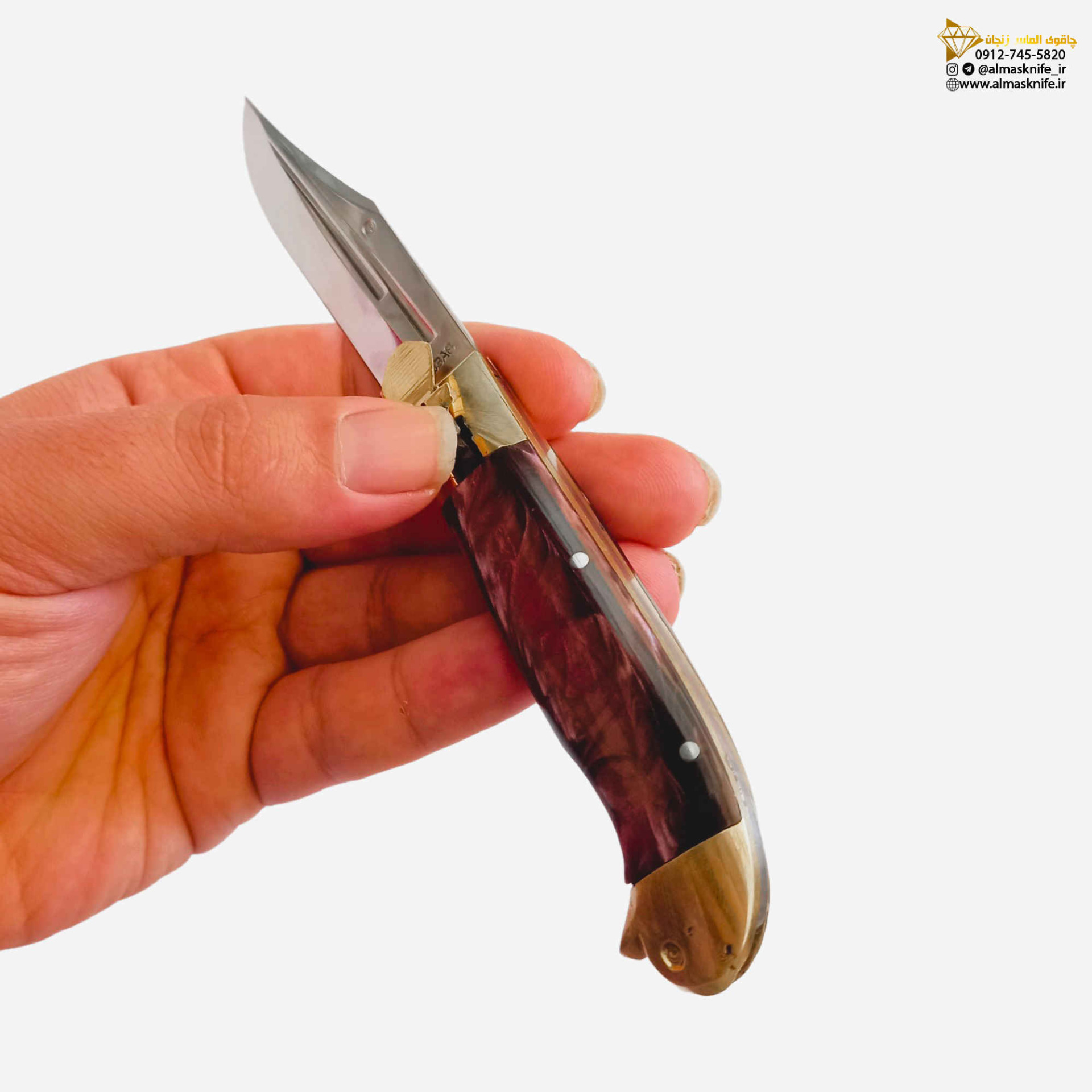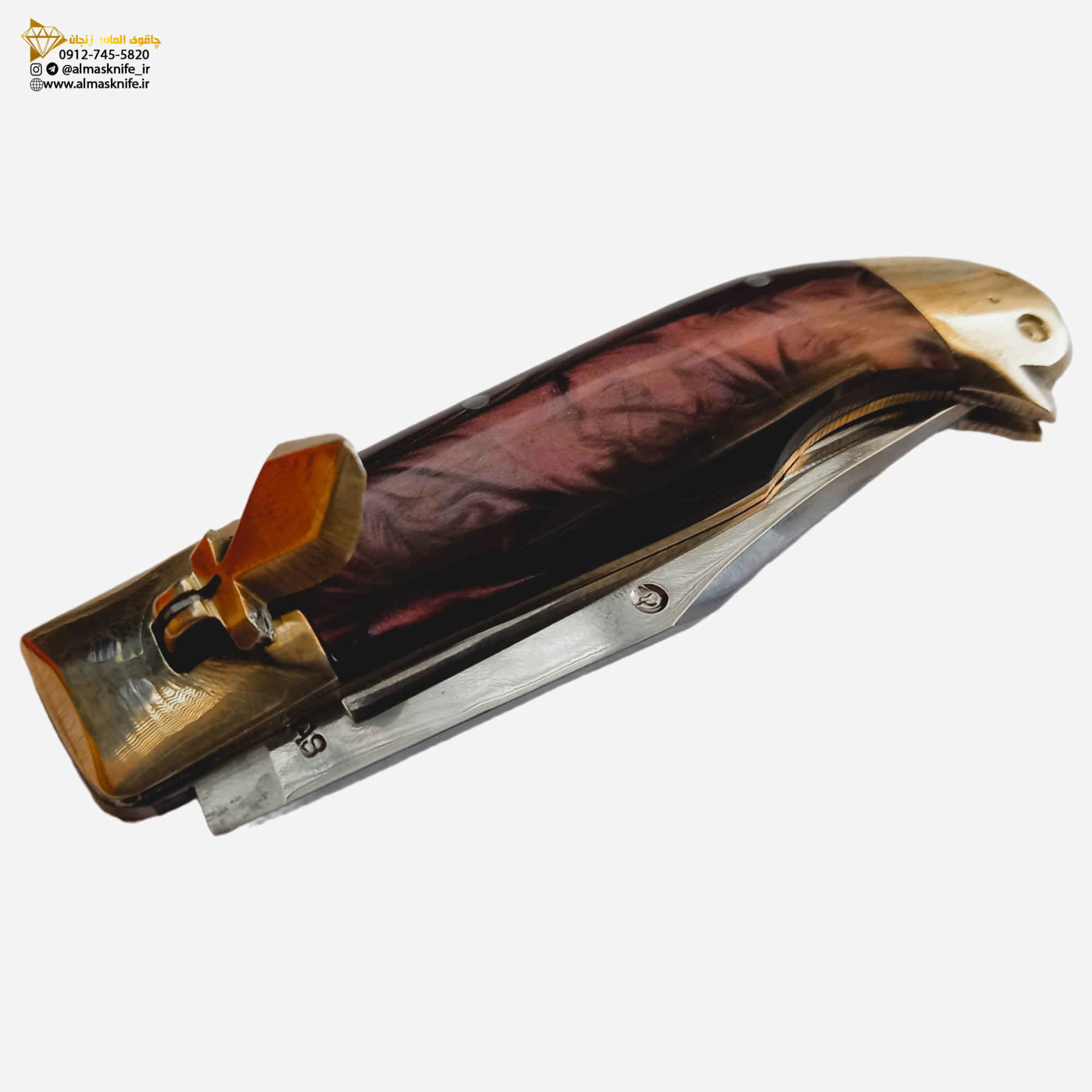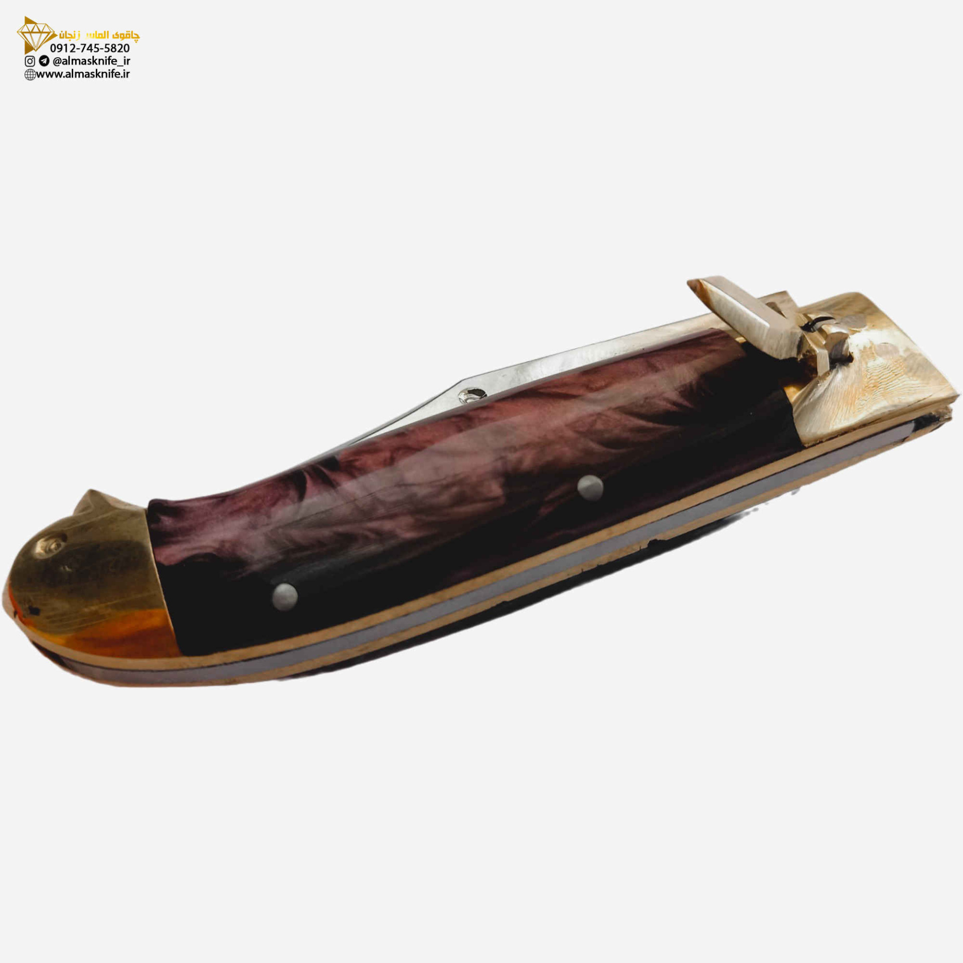چاقوی جیبی ضامن دار فشاری همراه با غلاف و مصقل